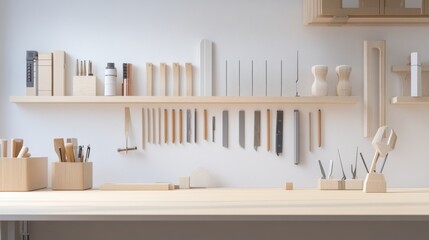 Contemporary minimalist workshop with minimal decor. Featuring clean lines and an organized layout