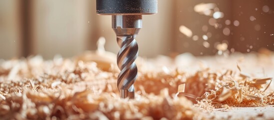 Skilled carpenter using a powerful driller to make precise holes on a piece of wood