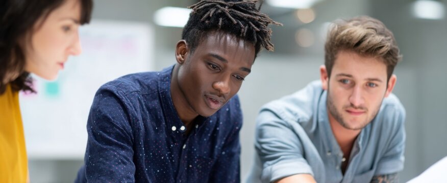 Young professionals collaborating in modern office workspace