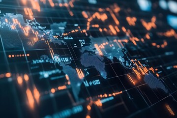 Data flow chart illustrating the connections between global financial markets, with sleek lines and nodes representing the flow of capital, stocks, and currencies in a modern, tech-driven world