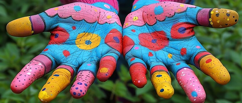 Celebrating world humanist day with vibrant hand-painted rainbow art. Horizontal banner. Copy space. Hands on a colorful background