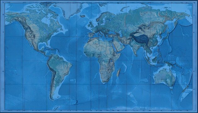 Low Contrast Blue World Map Blueprint Grid Overlay