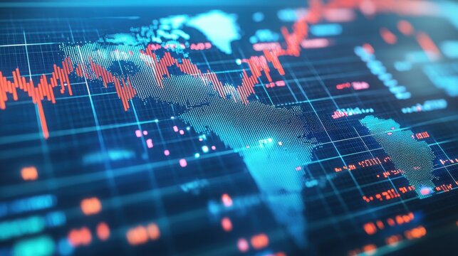 Global financial data and stock market trends on world map