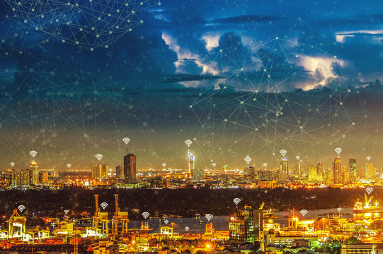 Photo of Communication technology for internet business. Global world network and telecommunication on earth and IoT. Elements of this image furnished by NASA