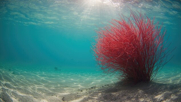 Slender-beaded coral weed growing on reef in Aegean Sea, highlighting marine biodiversity, World Oceans Day