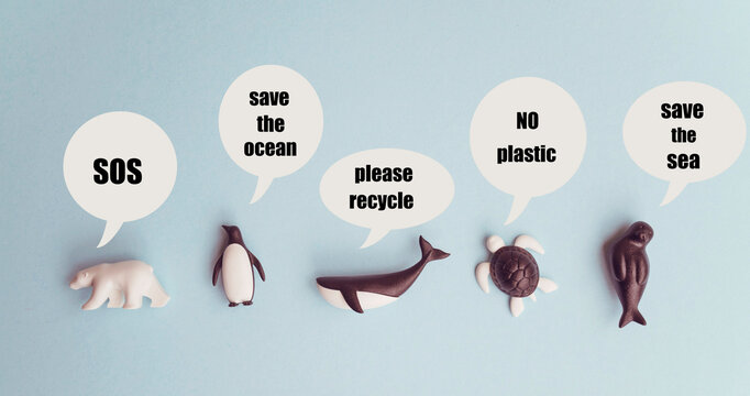 Keep the ocean plastic free message on speech bubbles with sea animals