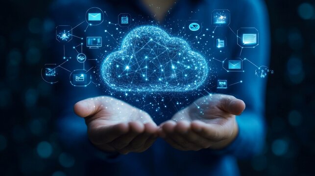 Businessman Presents Futuristic Cloud Computing Network
