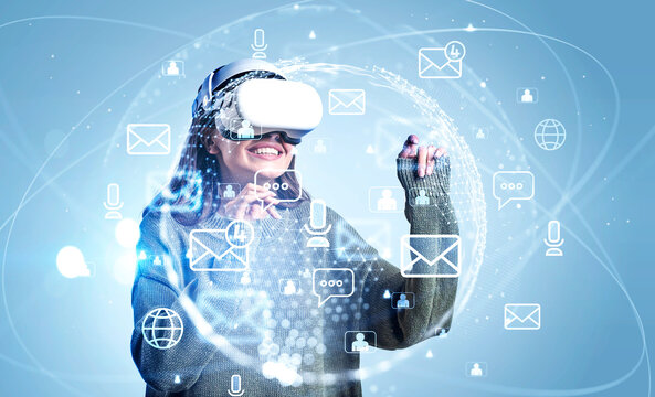 Virtual reality and social media interaction concept
