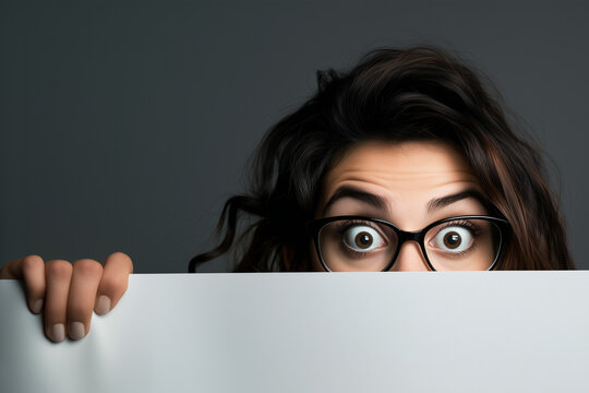 Wow, look here. Young chinese lady holding hand with open palm, showing free space and touching her cheek