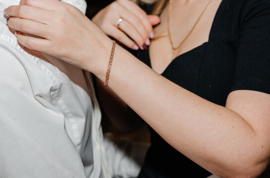 Close-up of a white paper event bracelet on a male wrist. - mockup template for an event.