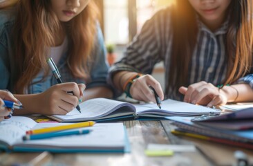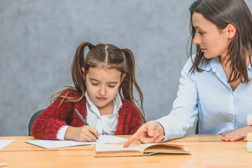 Study at home for education, back to school and literacy day concept with girl kid student self-learning doing homework writing, taking note on desk