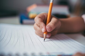 School supplies of blank lined notebook paper with eraser marks and erased pencil writing, surrounded by balled up paper and a sharp pencil. Studying or writing mistakes concept.