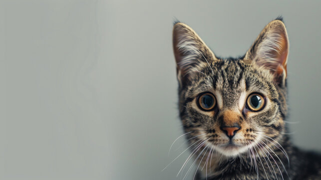 Puzzled woman with uncertain expression, thinking face. Large open eyes, hand at face. Copy space left for banner, text or infographic. Questioning, curious, doubtful mood, generative AI portrait.
