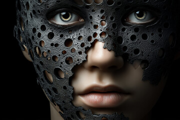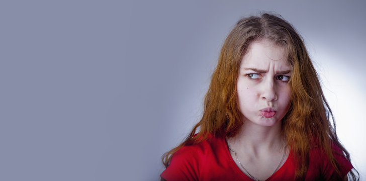 Portrait of a conceived young wwoman as a symbol of search of problem solvin.