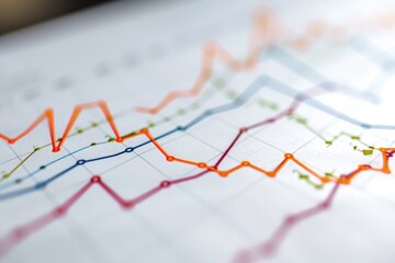 A detailed view of a line graph drawn on a piece of paper showcasing data trends and patterns, Graph chart showing rising curves indicating inflation, AI Generated