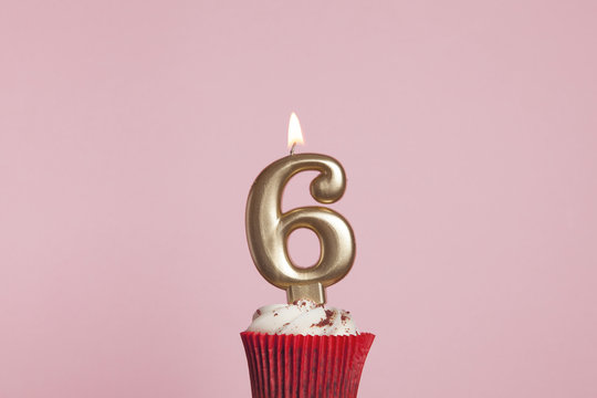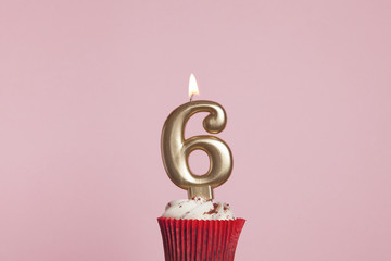 Birthday cupcake with lit birthday candle Number seven for seven years or seventh anniversary