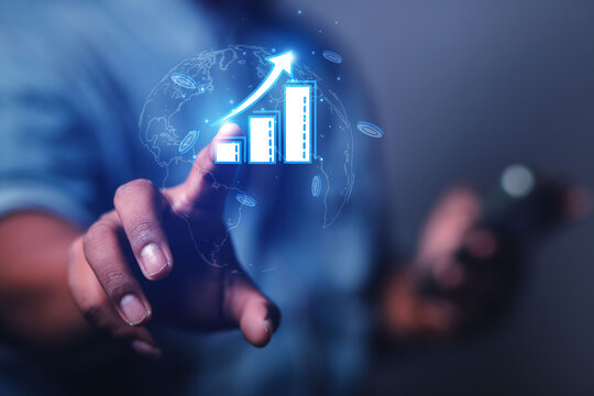 Recap business, economic, market, budget, financial  and meeting report concept. Business summary and overview for planning and develop. Businessman touching on RECAP words on smart screen background.