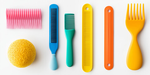 Close-up of a fluffy, yellow ball on a wooden stem against a light-blue background