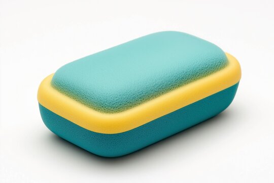 Rectangular foam object with rounded corners featuring a yellow base and teal top, emphasizing minimalist design and functionality