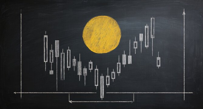 Chalkboard chart with candlestick patterns and a large yellow circle (1)