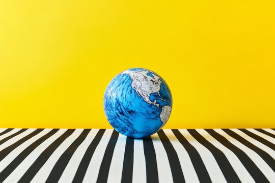 Stylized Earth with concentric rings and cosmic nebula background globe planet