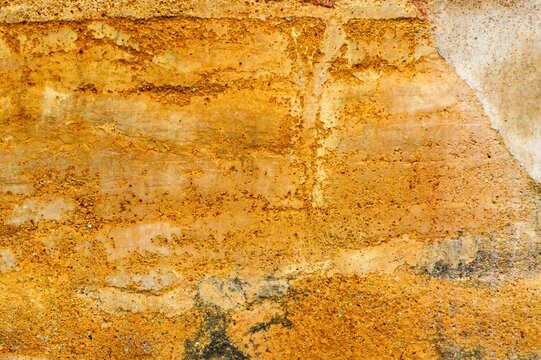 Deep yellow wall with grunge texture and dark markings in urban setting