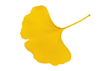 Isolated Ginkgo biloba yellow leaf, autumn foliage, natural fall leaf, deciduous, medicinal plant
