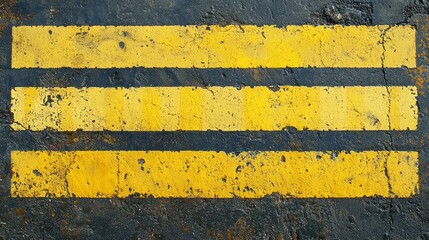 Minimalist geometric yellow floor markings on smooth concrete