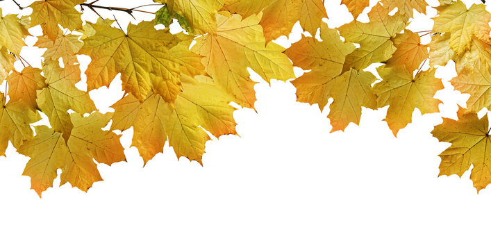 Isolated of hanging autumn yellow Maple leaves foliage, border
