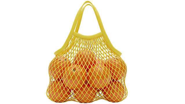Yellow Mesh Bag Filled with Oranges
