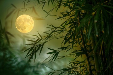 Mysterious night landscape with full moon