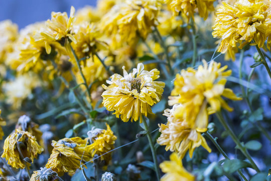 Potted yellow chrysanthemum flower arrangement isolated PNG with Transparent Background