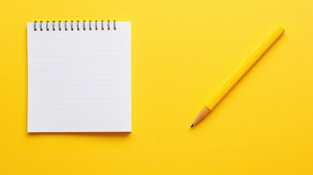 Gray background enhances the yellow notepad and pencil creating a visually appealing copy space image