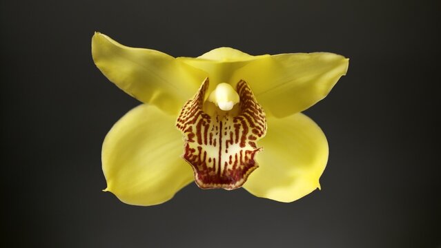 Close-up of beautiful yellow orchid blossom in bloom