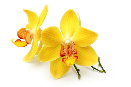 Beautiful yellow orchid flower on white background