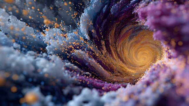 Abstract cloud formation with orange, blue, and yellow particle lights