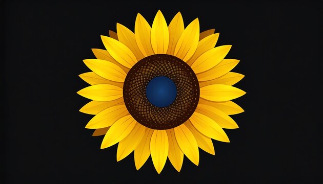 A vibrant, detailed illustration of a fully bloomed flower, showcasing bright yellow petals surrounding a dark brown center with a blue spot