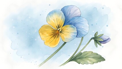 Watercolor pansy flower with blue and yellow petals