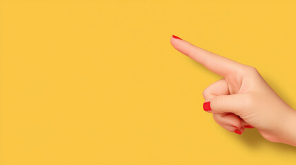Middle-aged caucasian woman on yellow points sideways, is trying to choose between two options.