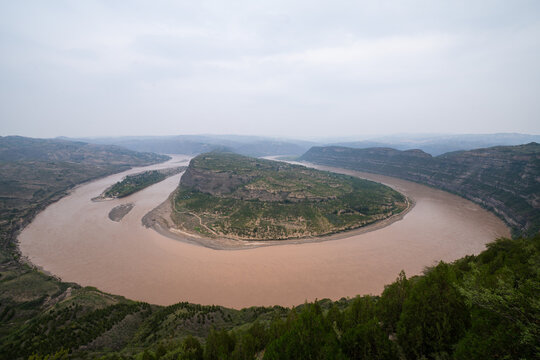 The Yellow River winding up in Ruoergai Grassland, Sichuan , autumn time.