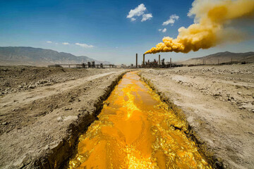 Panorama of several photos, the yellow river in Kota Bharu in Malaysia, a picturesque landscape