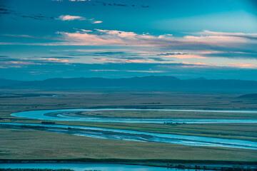 Beautiful landscape of peaceful blue river, it is the source of yellow river in China.