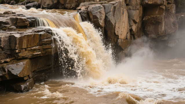 Summer Hukou Waterfall on the Yellow River for a Spectacular Natural Scenery and Tourism Background