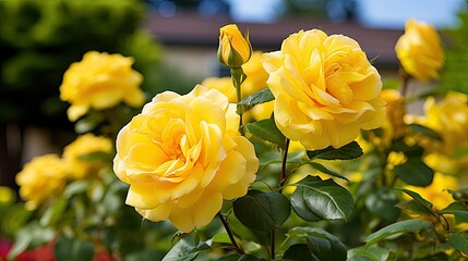 Beautiful yellow rose bush growing in the garden.
