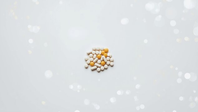 White and yellow tablets displayed against a plain white backdrop, emphasizing medication identification and storage, International Medicine Day
