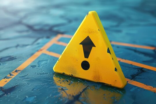 3d yellow triangle warning sign with black exclamation mark on white background.