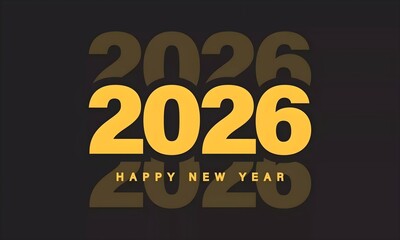 Happy New Year 2026 greeting with bold yellow typography on a dark background.