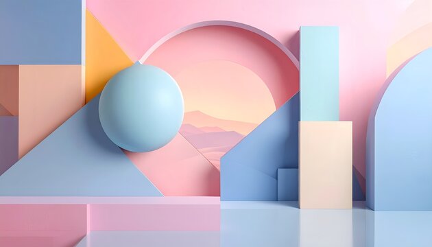 a vibrant abstract art piece featuring geometric shapes in shades of blue, pink, orange, and yellow