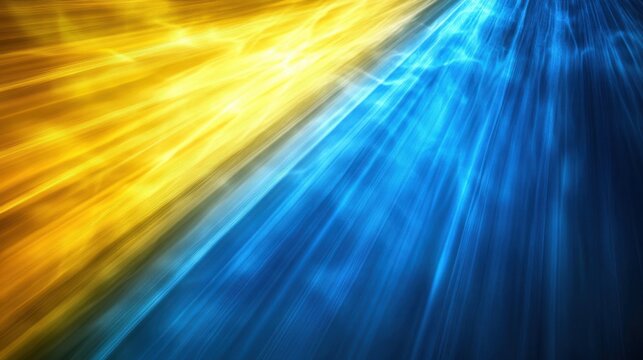 Vibrant blue and yellow abstract light rays create a dynamic split in a modern artistic representation