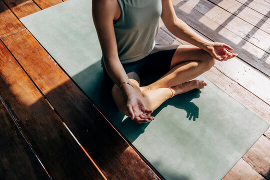 Woman exercising in home yoga practice for fitness